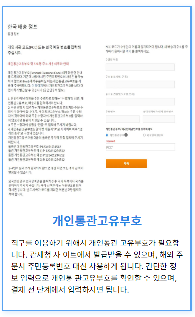 | 개인통관고유부호 | 관세 주의사항 | 구매수량 제한 |