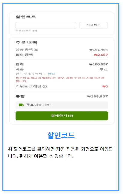 - 각 할인코드의 적용 조건 확인 필수