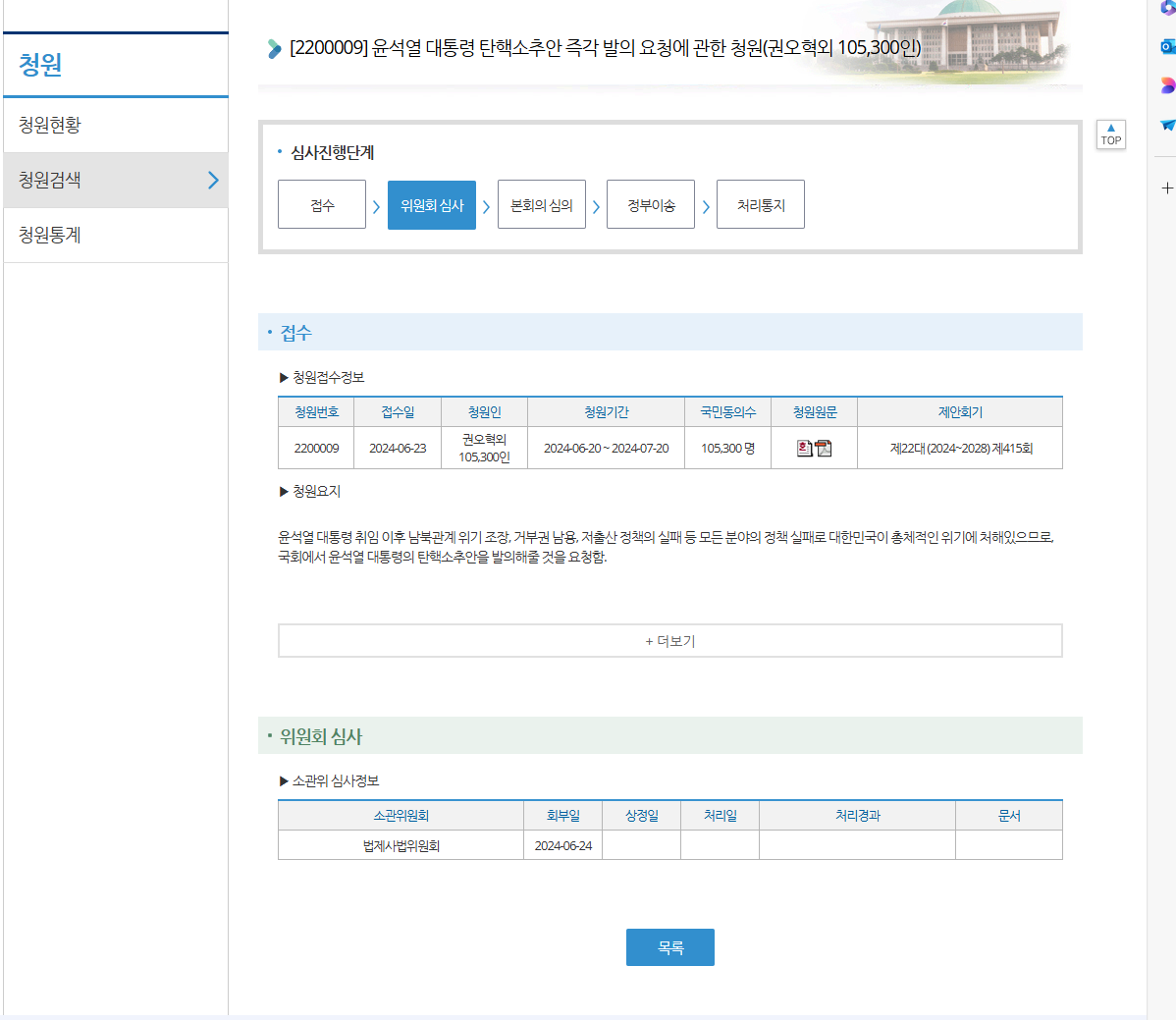 | 청원 현황 | 국회의 대응 | 국민의 반응 |