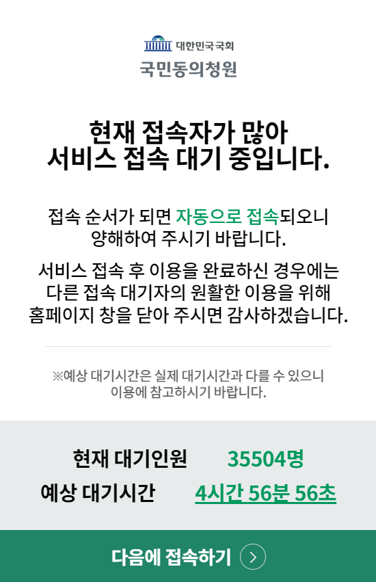 | 청원 작성 | 동의 모집 | 국회 제출 |