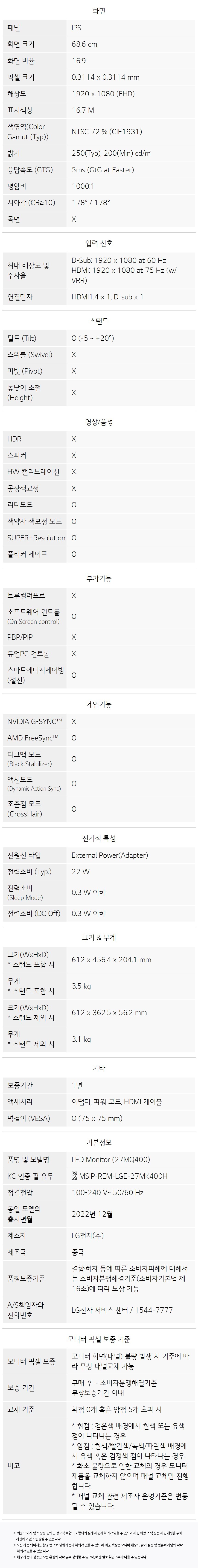제목: 24MQ400 및 27MQ400 모델 리뷰 -