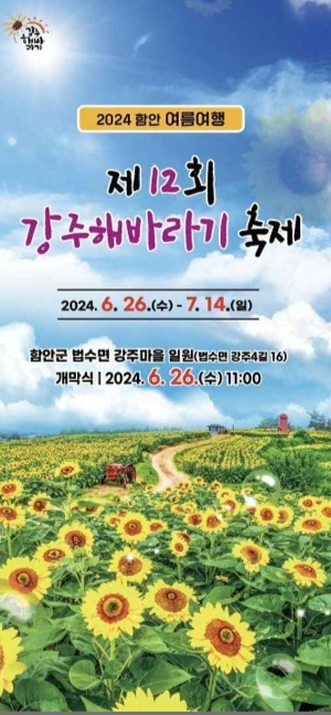경상남도 함안군에서 열리는 강주해바라기 축제는 2024년 6월 22일부터 7월 14일까지 개최됩니다. 수많은 해바라기가 일제히 피어나는 장관을 감상할 수 있는 이곳은 여름철 최고의 사진 촬영 명소입니다. 가족과 함께 방문하여 아름다운 해바라기 밭에서 추억을 남겨보세요. 다채로운 프로그램과 즐길 거리도 풍부합니다.