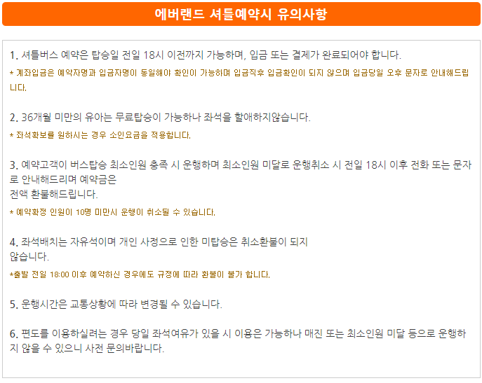 셔틀버스 이용 시 유의사항