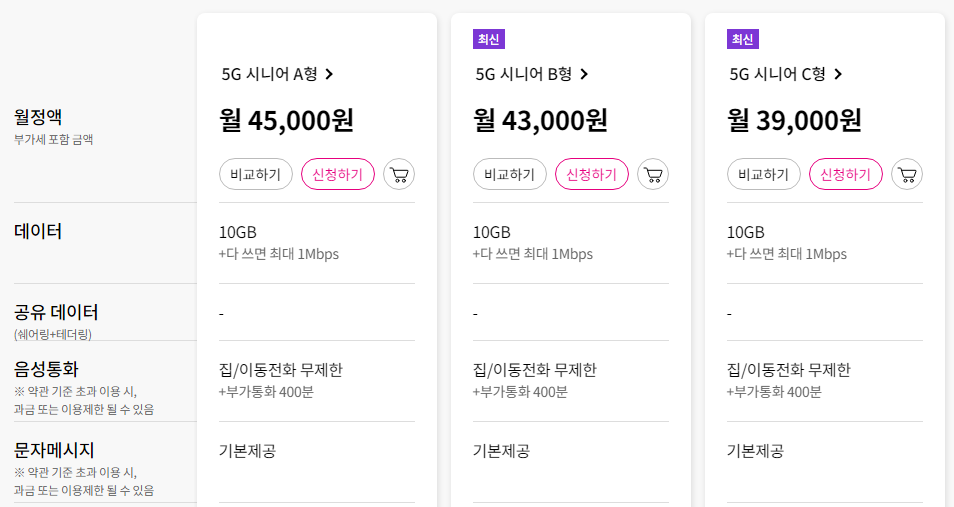 3. 5G 시니어 요금제 신설
