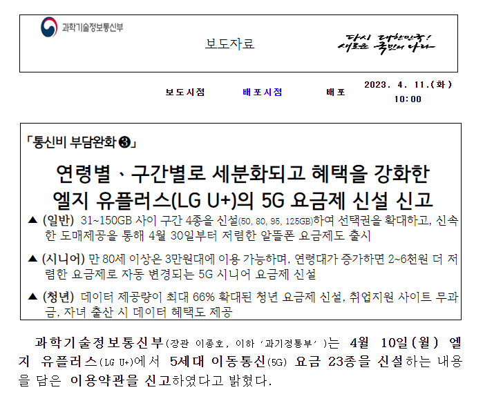 마지막으로, LG U+는 고객들의 이용 패턴에 따라 다양한 요금제를 마련하고 있습니다. 청소년, 청년, 중간 사용자, 시니어 등 다양한 연령대와 사용 패턴에 따른 요금제를 적절히 선택하시면, 부담 없이 5G의 놀라운 속도와 서비스를 즐기실 수 있을 것입니다.