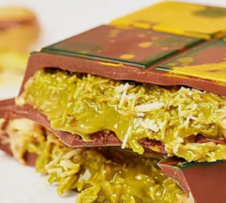 A. 두바이 초콜릿은 피스타치오 크림과 튀긴 카다이프가 들어가 독특한 식감과 맛을 제공합니다.