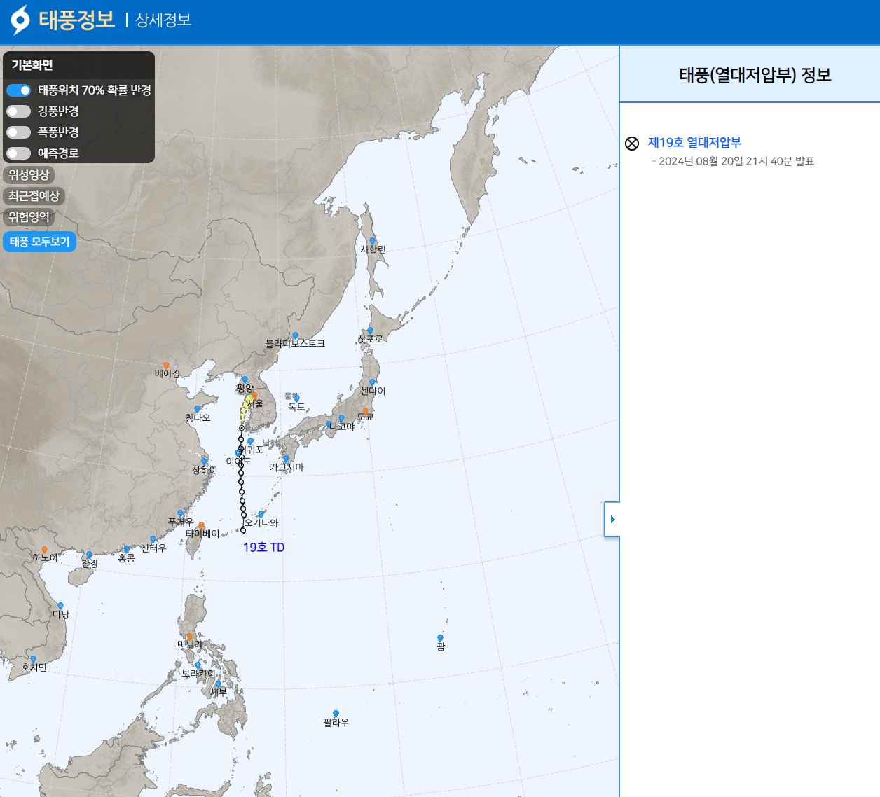 한국 기상청(KMA)에서 태풍 경로 확인하기