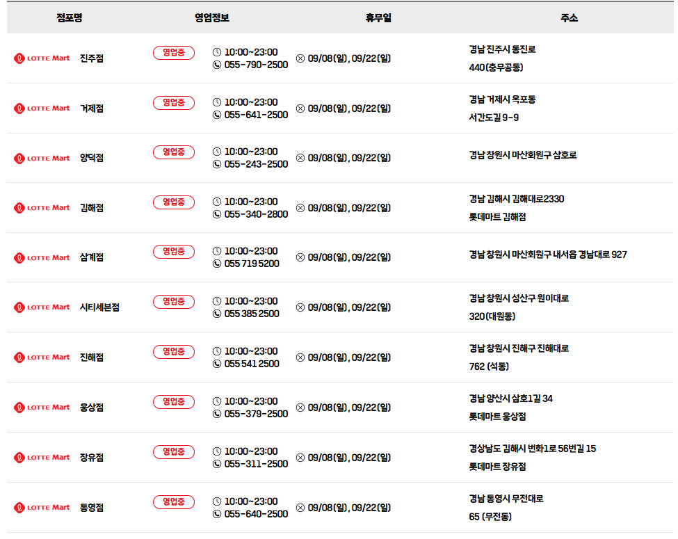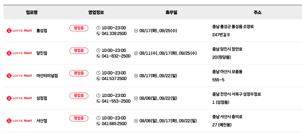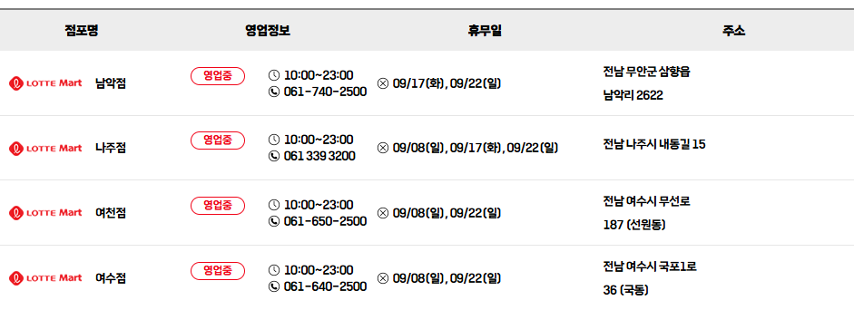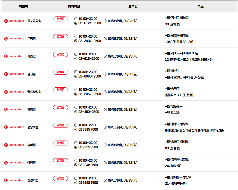⭐ 롯데마트 9월 휴무일을 알아보세요!