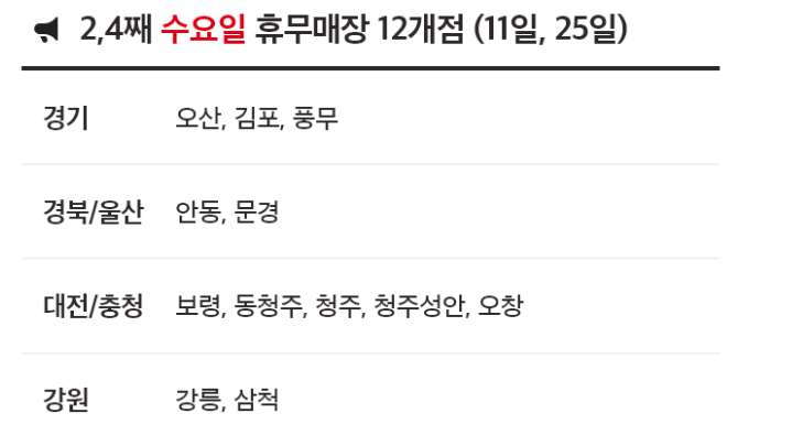 휴무일 확인 필수 | 휴무일 확인 필수 | 지점별 운영 시간 확인 필요 |