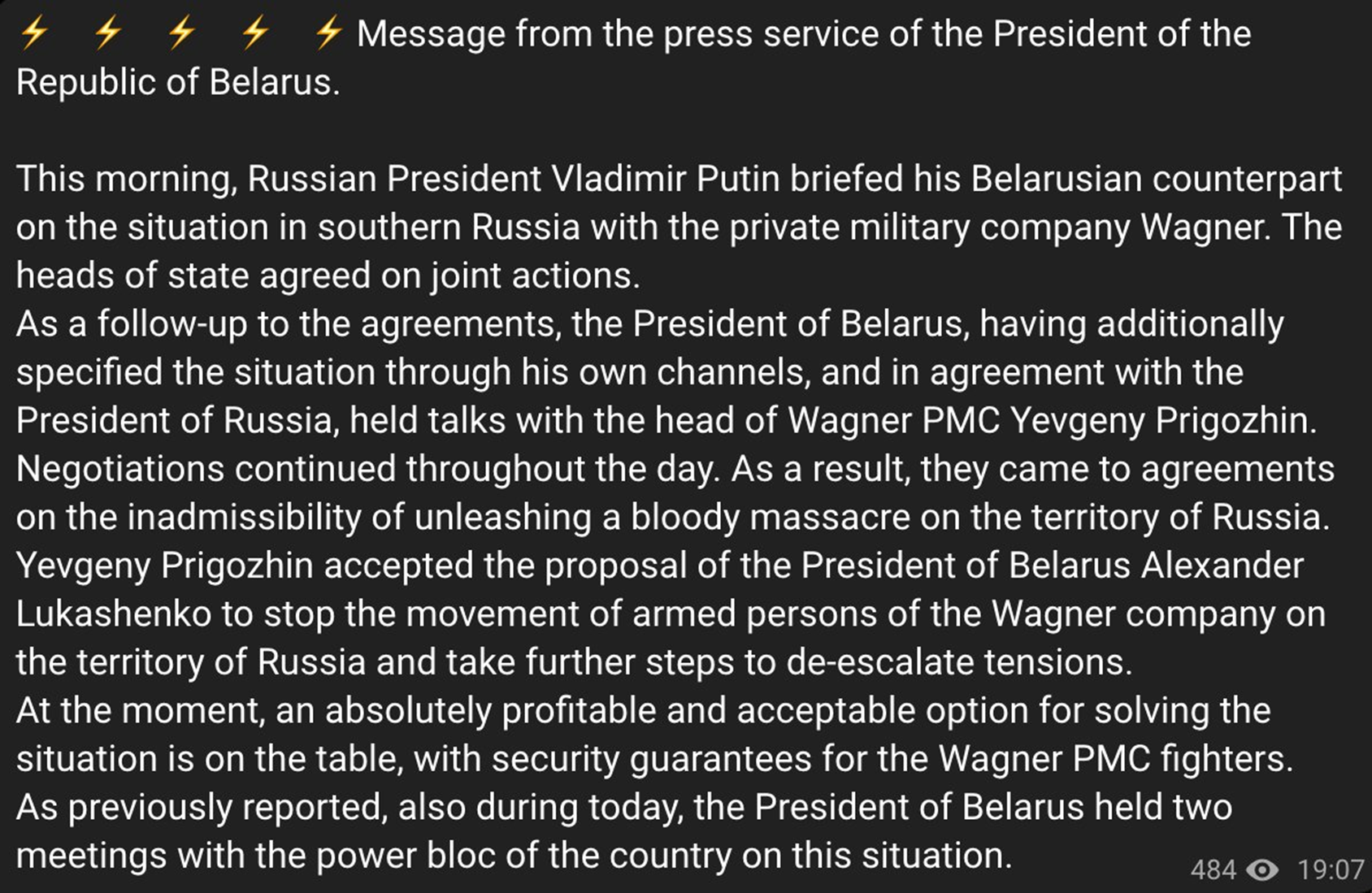 바그너 그룹과 러시아 정부 간의 이번 쿠데타는 러시아 내부의 정치적 분쟁뿐만 아니라 전 세계적으로 그 영향력을 미칠 수 있다. 불확실성과 변동성은 이미 민감한 국제 정치 상황을 더욱 복잡하게 만들고 있다. 이러한 상황은 국제사회가 더욱 주의 깊게 관찰하고, 필요한 경우 적절한 대응을 준비해야 하는 상황을 만들었다. 벨라루스 대통령이 중재하여 프리고진과 어떤 협상을 했는지는 정확히 알수 없으나 어느 정도 결론은 난것으로 보입니다.