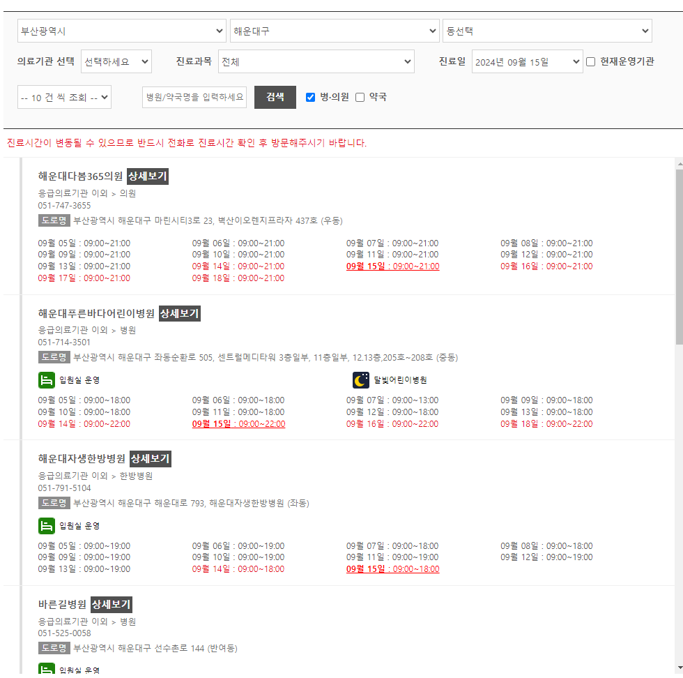 2024년 부산 추석 연휴 진료 병원 및 약국 안내