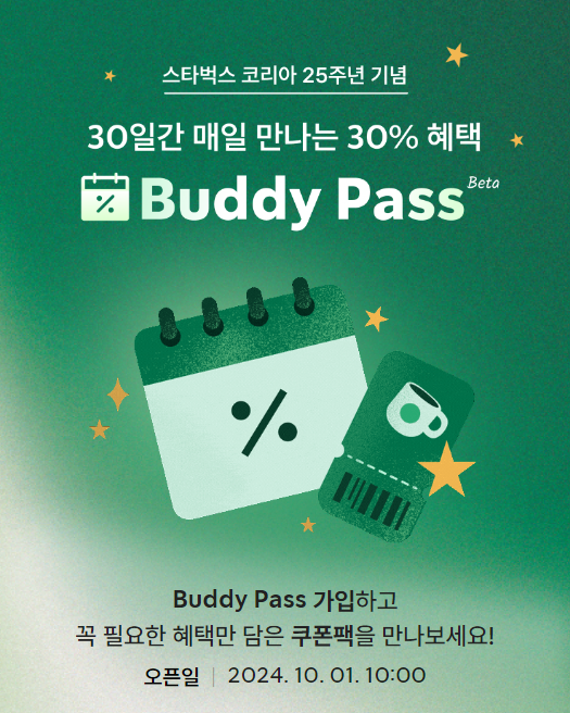 스타벅스 코리아가 개점 25주년을 맞아 새로운 구독 서비스인 Buddy Pass(버디 패스)를 10월 1일부터 시범 운영한다. 이번 서비스는 1,300만 멤버십 회원들에게 특별한 혜택을 제공하여 고객 만족도를 높일 것으로 기대된다.