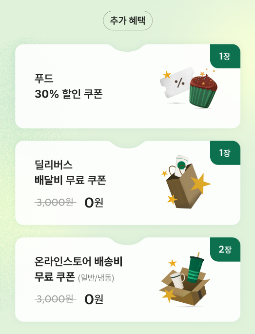 | 푸드 할인 | 월 1회 30% 할인 쿠폰 제공 | 제조 음료 할인과 중복 가능 |