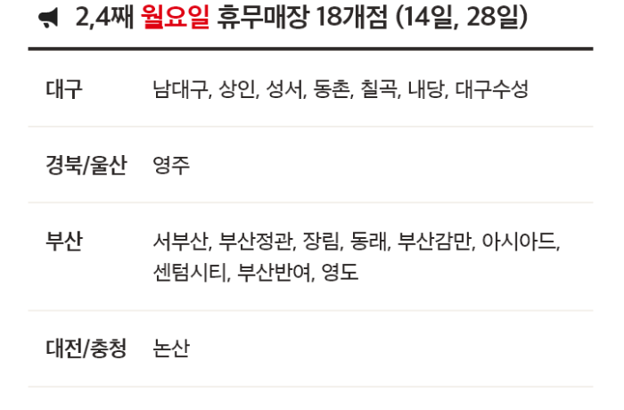 Q. 홈플러스 휴무일은 매달 동일한가요?