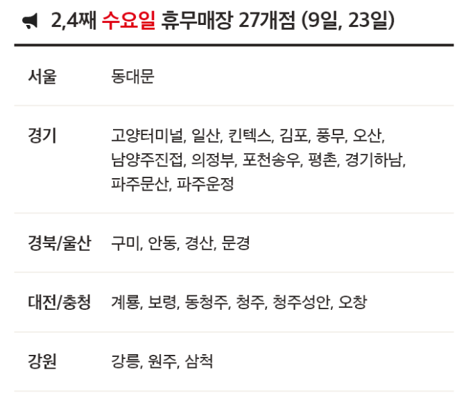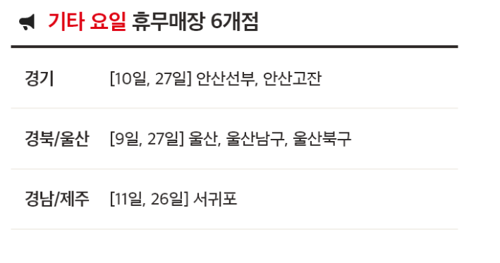 | 대구 수성점 | 10월 10일, 24일 | 10:00 ~ 22:00 |