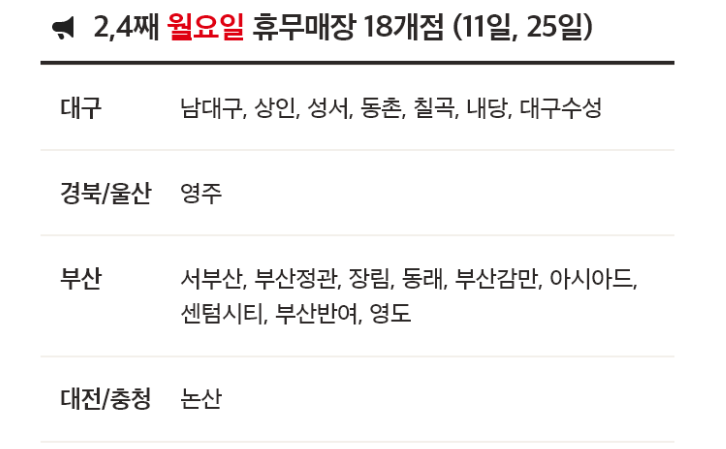Q. 홈플러스 휴무일은 매월 동일한가요?