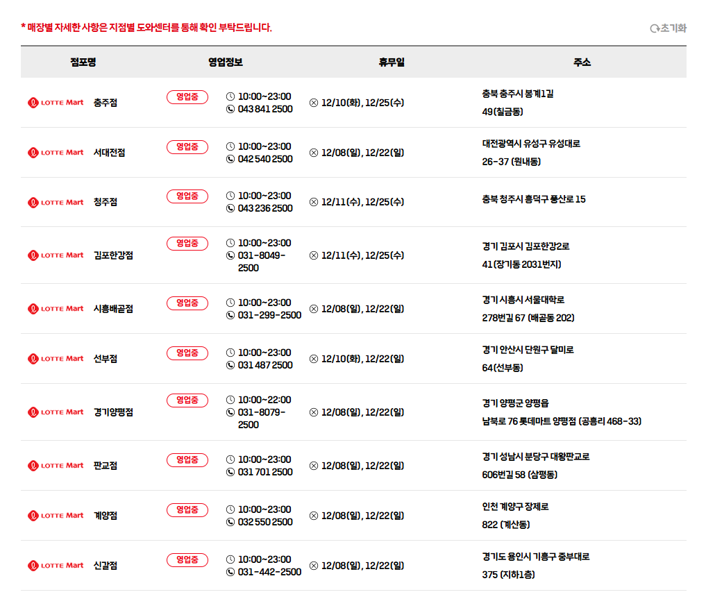 롯데마트 휴무일 12월 | 쉬는날 휴점일 | 고객센터 전화번호 안내
