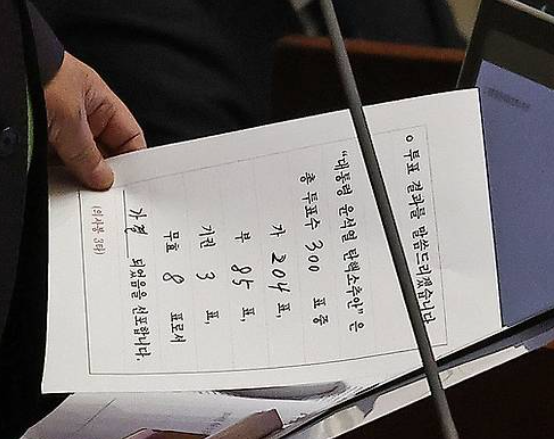 ⭐ 탄핵 소추안은 재적 의원 300명 전원이 참여한 무기명 투표에서 204표의 찬성으로 가결되었습니다.