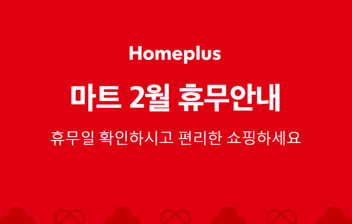 - Homeplus 2월 휴무일 일정을 반드시 확인하시기 바랍니다.