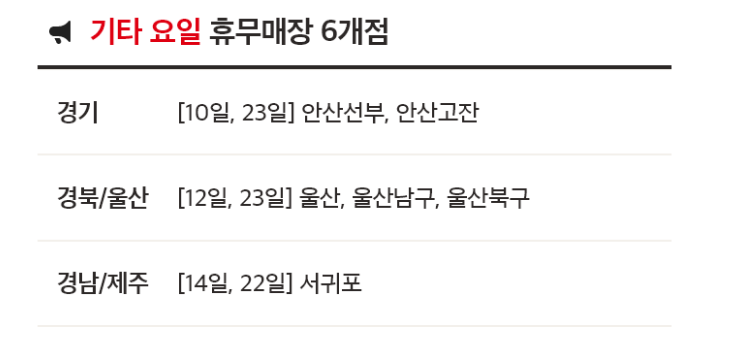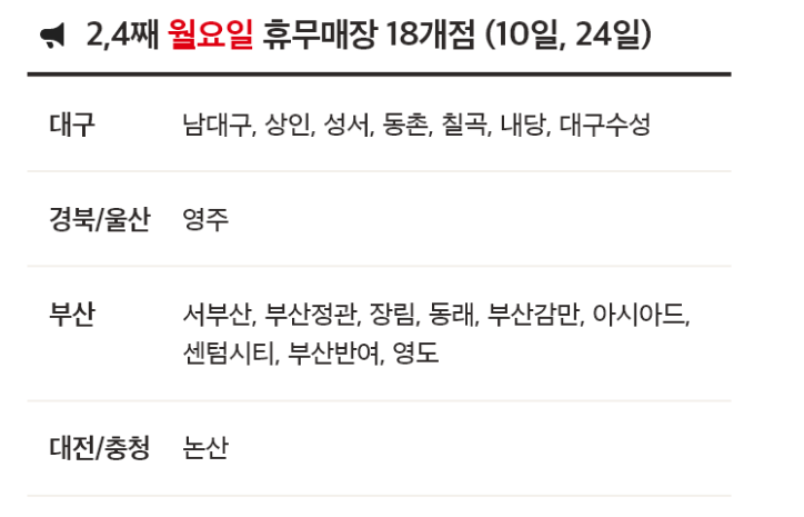 | 매장 | 휴무일 |