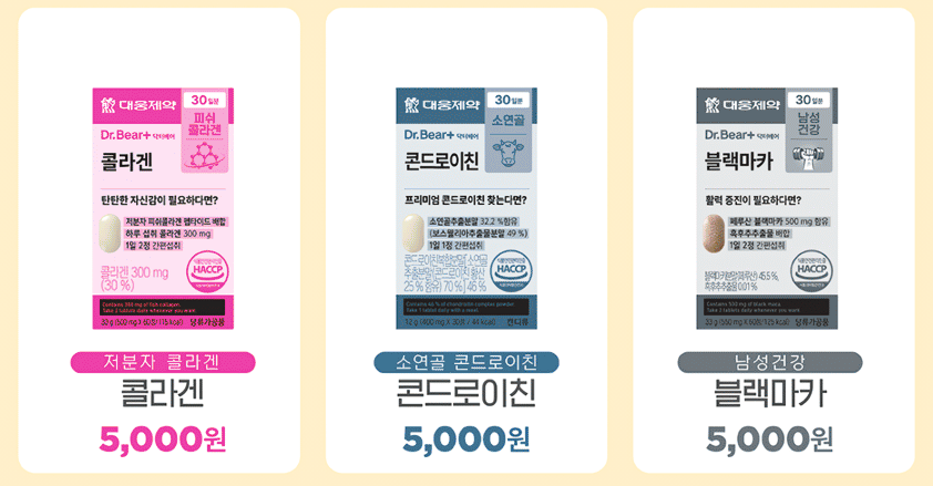 ⭐ 건강기능식품 시장에 대웅제약, 일양약품 등과 협력하여 다양한 제품을 출시했습니다.