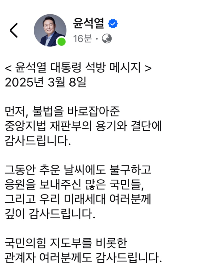 ⭐ 법원의 용기와 결단을 치하하며, 국민들의 응원에 감사를 표했습니다.
