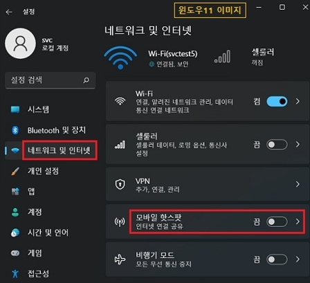 노트북에서 핫스팟 연결하기 (Windows 10/11)