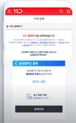 ⭐ 결제 창에서 삼성 앱카드를 선택하고, 옵션을 체크하세요.
