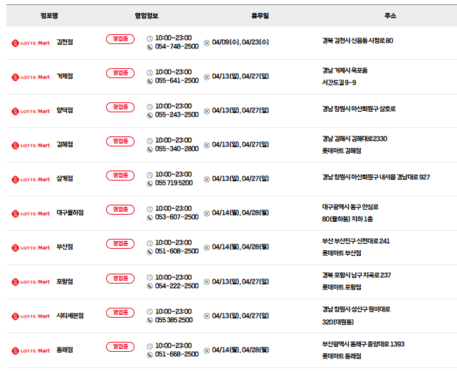 롯데마트 쉬는날 4월 휴무일