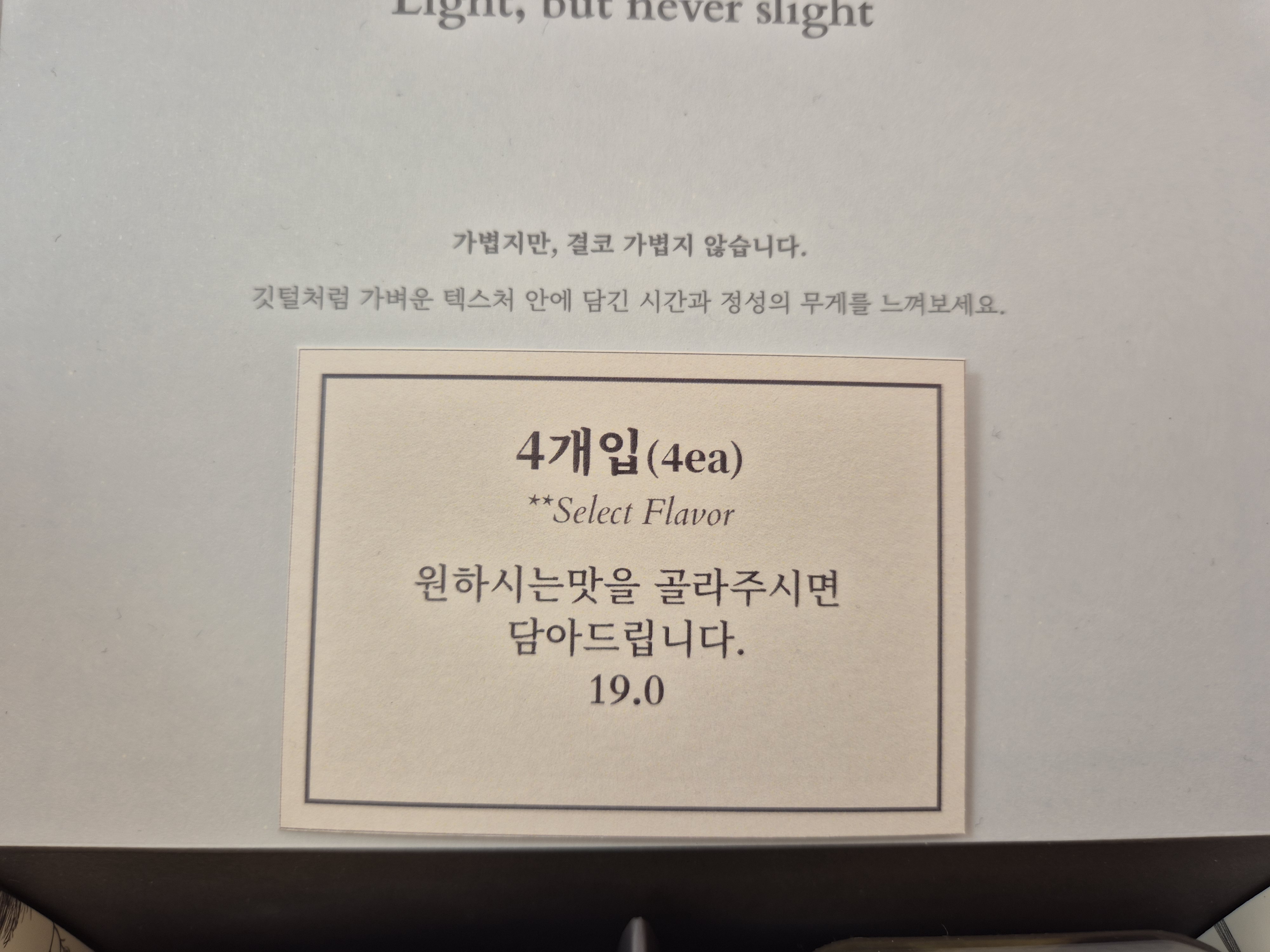 종류는 8개입, 4개입, 2개입이 있었습니다. 가격은 8개입은 35000원, 4개입은 19000원입니다.