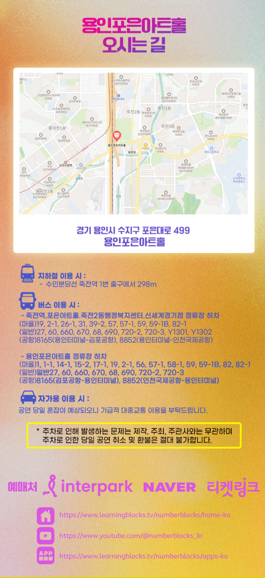어린이 가족뮤지컬 <넘버블록스>는 가족 단위로 즐길 수 있는 유익한 공연으로, 예매 시 주의 사항을 숙지하고 안전한 관람을 위해 공연장을 방문하길 권장합니다. 주차와 교통 상황을 고려하여 여유 있게 도착하고, 공연 관람 후에도 불법 거래에 주의하십시오.