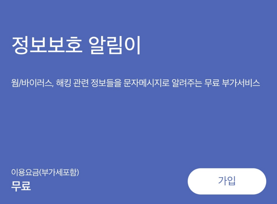 - 정보 보호 알림 가입으로 해킹 및 바이러스 위험 경고