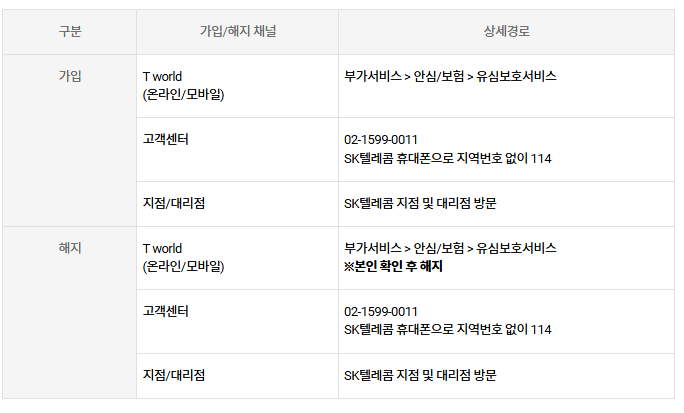 유심 보호 서비스는 T월드 앱을 통해 손쉽게 가입할 수 있습니다. [정보보호알림이]와 [번호도용문자차단] 서비스를 검색하여 무료로 가입하면, 해킹 및 번호 도용을 차단하는 기능이 자동으로 활성화됩니다.