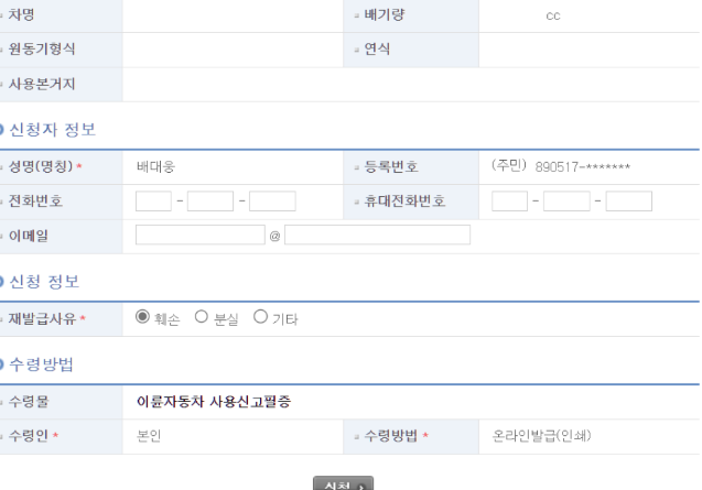 A. 인터넷으로 하기 위해서는 공동인증서(구 공인인증서) 또는 디지털원패스 인증이 필요합니다. 해당 인증을 통해 본인 확인 절차를 완료해야만 ‘이륜자동차 사용신고필증 재발급’ 메뉴를 이용할 수 있으며, 인증 후 즉시 출력이 가능합니다.