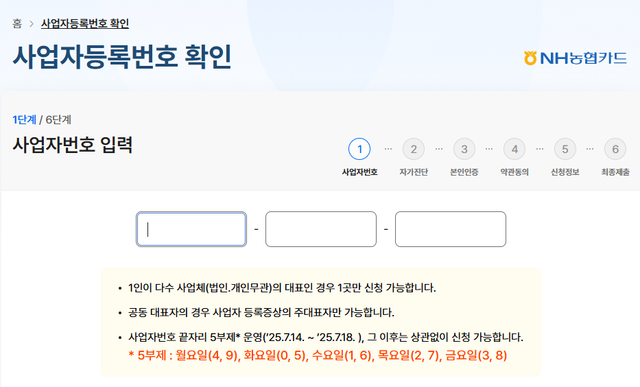 - 정보 입력: 사업자등록번호, 카드 정보 등