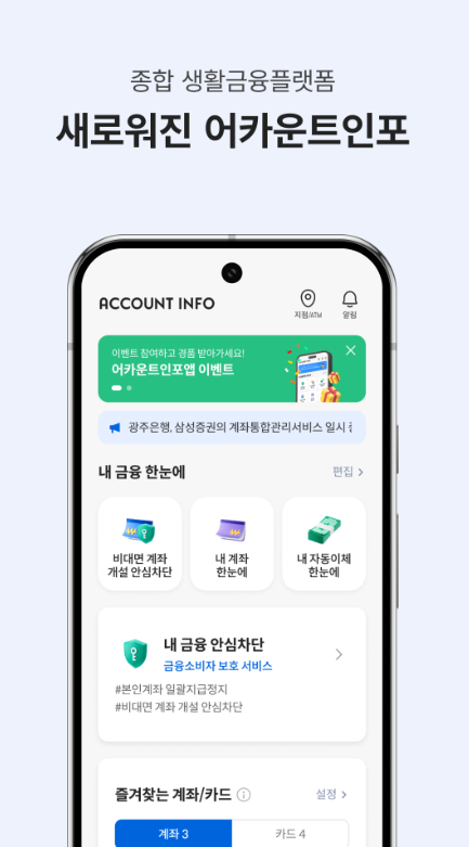 Q. 어카운트인포 앱으로 어떤 금융 관리가 가능한가요?