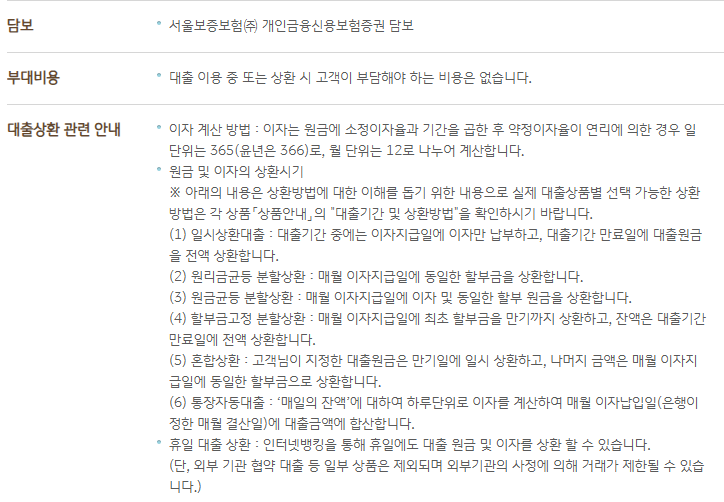| 대출 형태 | 마이너스통장형 | 상시 이용 가능 |