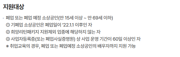 희망리턴패키지 지원대상