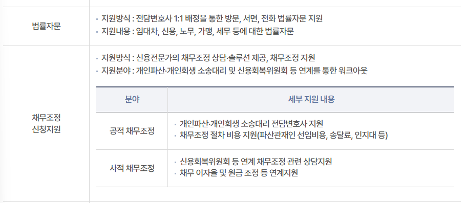 - 법률 및 채무조정 전문상담 제공