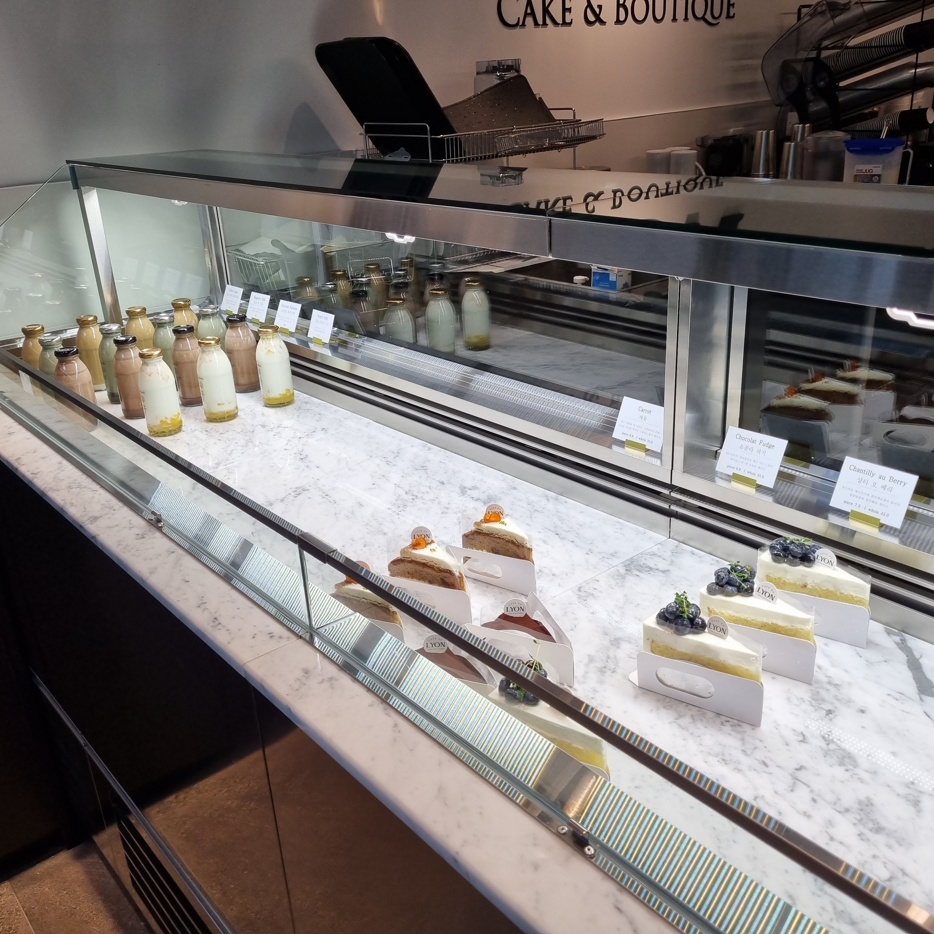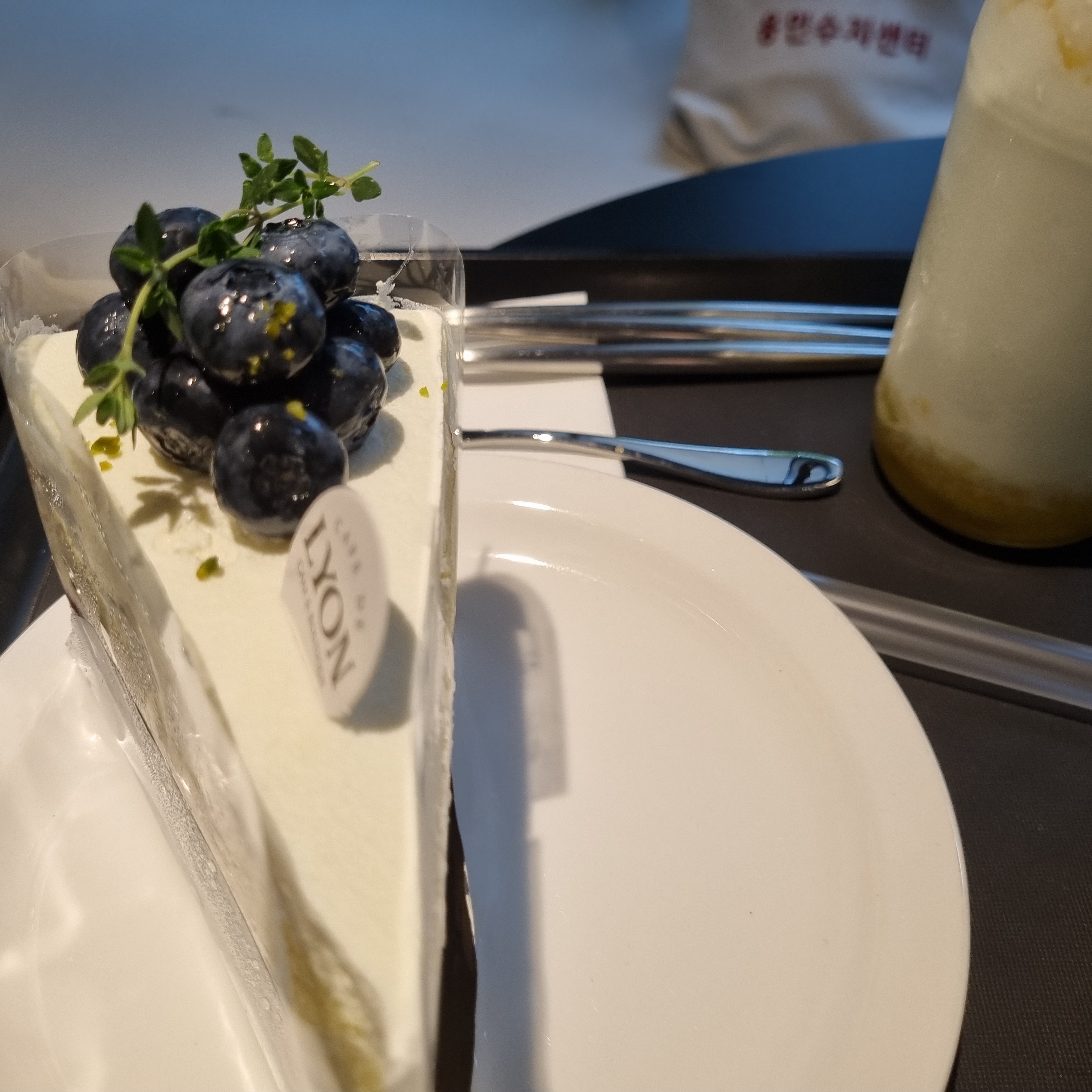 저는 블루베리가 올라간 케익과 아메리카노, 아이가 먹을 만한 과일이 들어간 우유를 샀습니다! 맛도 아주 좋았습니다