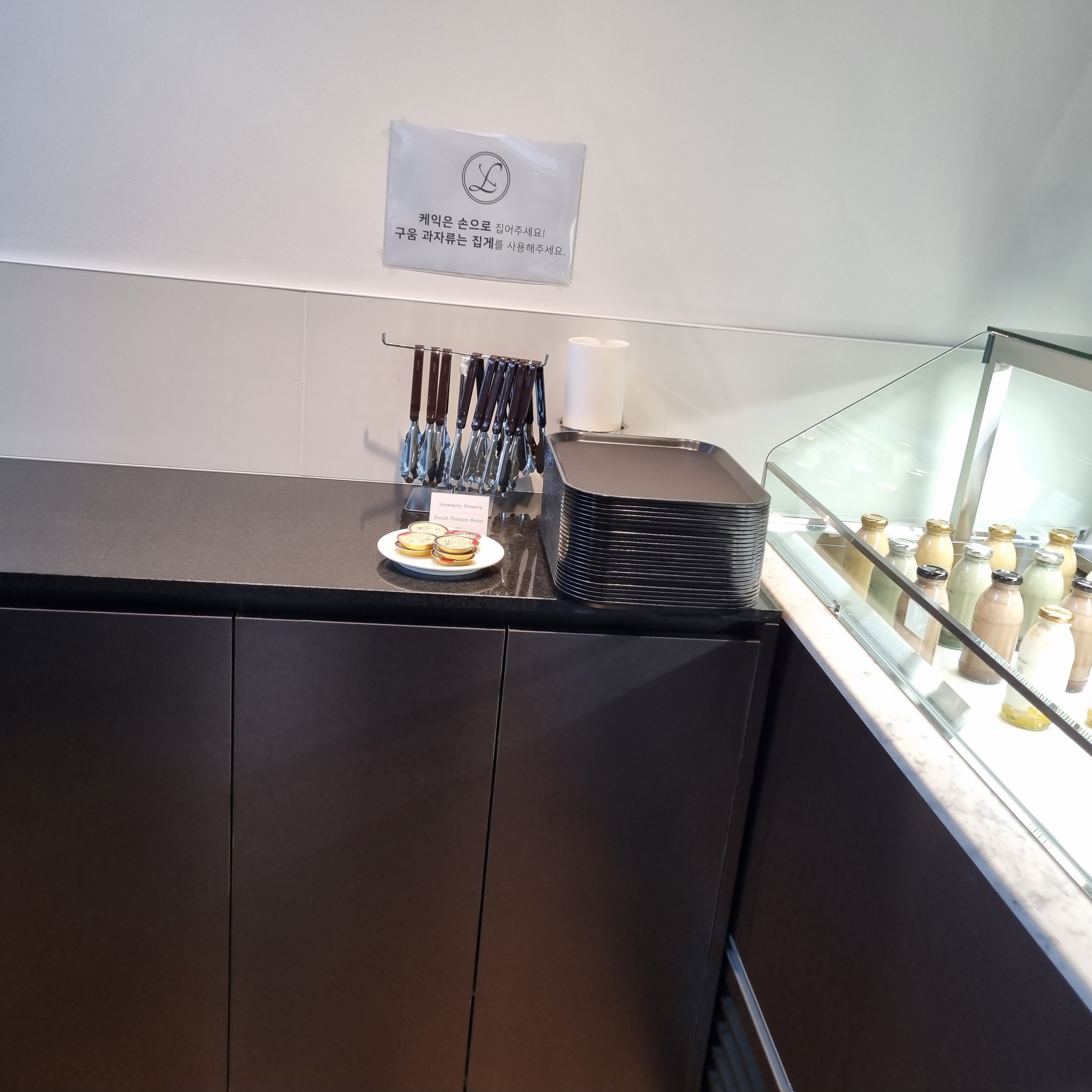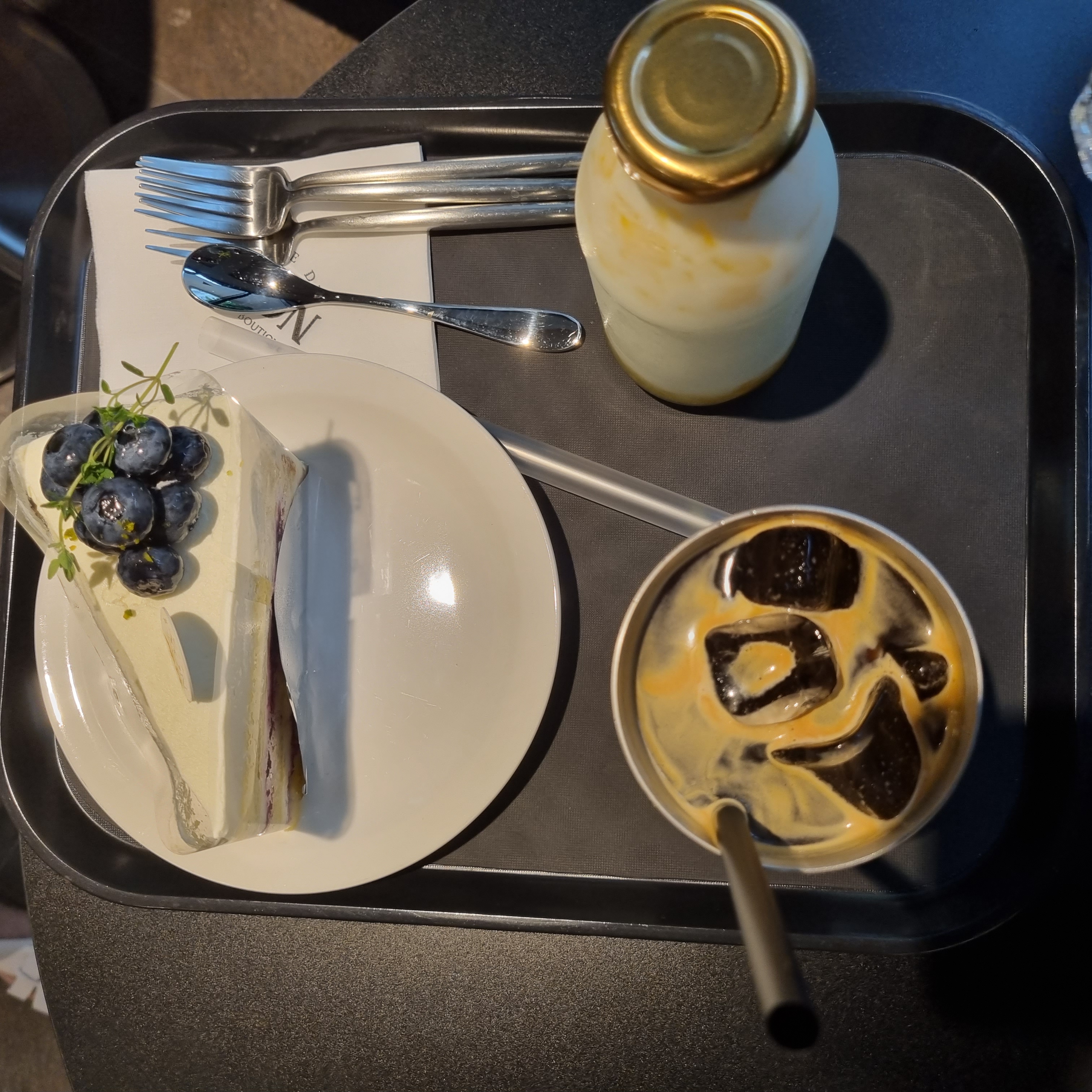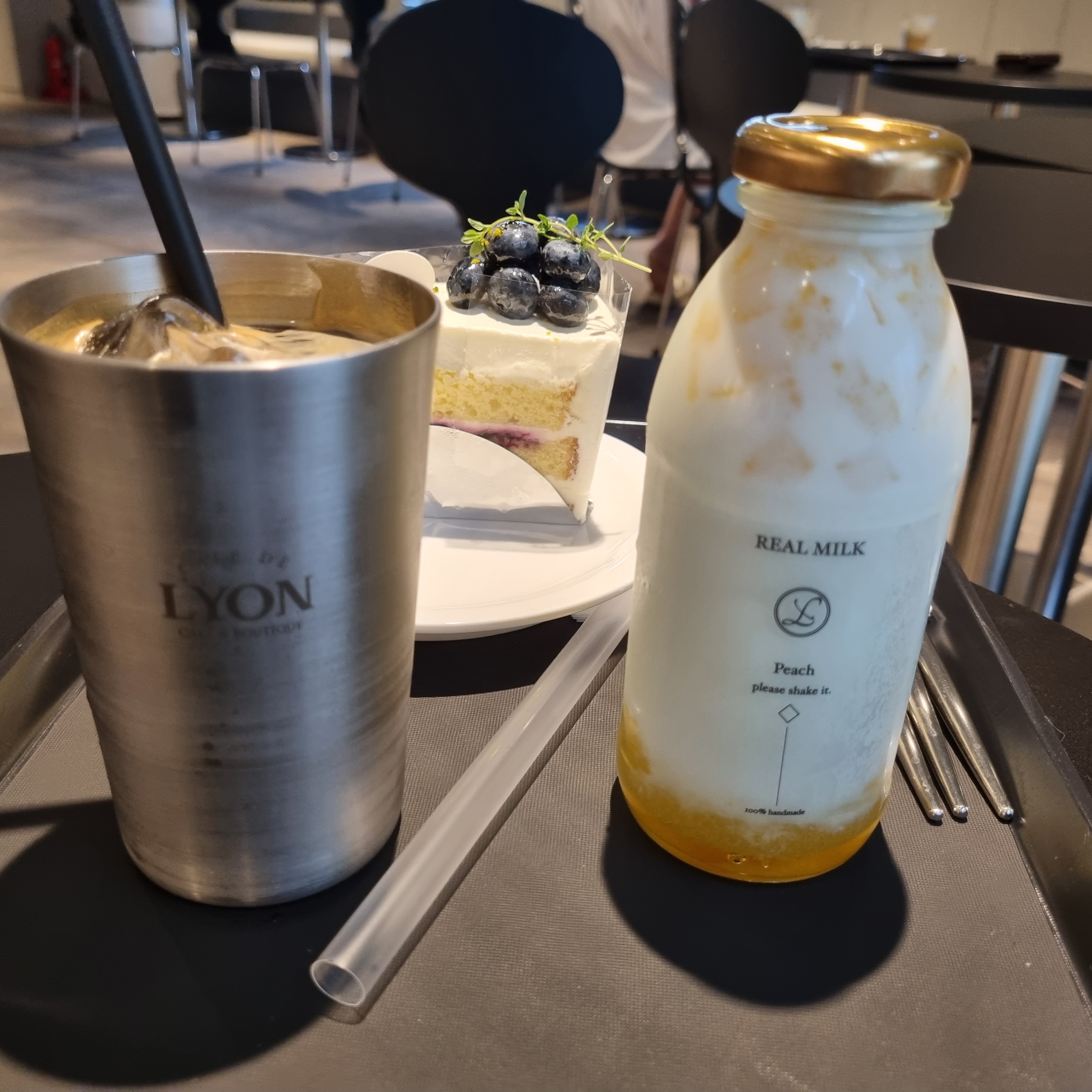 저는 블루베리가 올라간 케익과 아메리카노, 아이가 먹을 만한 과일이 들어간 우유를 샀습니다! 맛도 아주 좋았습니다