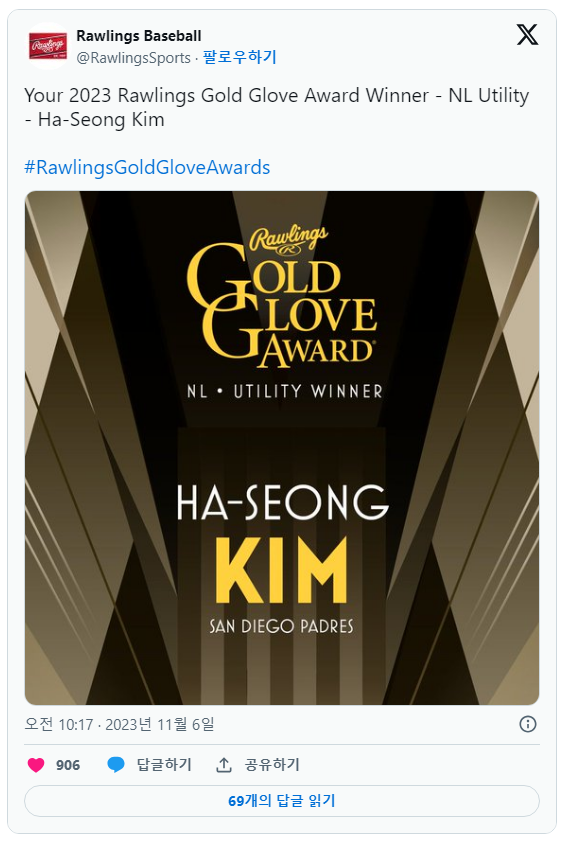 올해의 골드 글러브 수상자 발표는 한국인 선수에게 특별한 의미가 있습니다. 유틸리티 부문에서 높은 경쟁을 뚫고 이 상을 획득함으로써, 자신의 가치를 전 세계에 증명했습니다. 이 선수는 시즌 내내 매 경기마다 꾸준한 수비 실력을 보여주었고, 특히 2루수로서의 활약이 돋보였습니다.