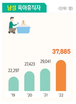 작년 한해 남성 육아 휴직 비율이 올라간 가장 큰 정책인