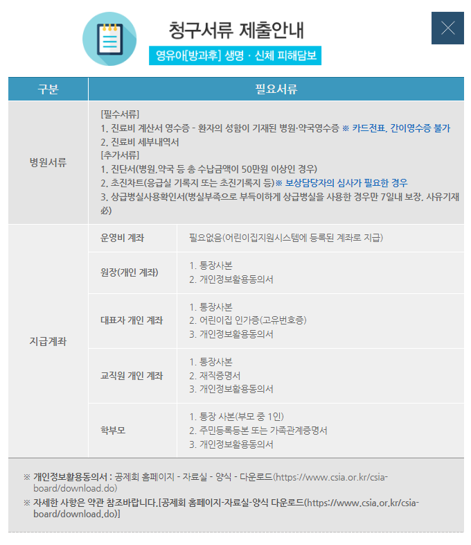 서류를 확인합니다. 그리고 필요한 진료비 계산서, 세부 내역서 등 필요한 서류를 준비합니다.