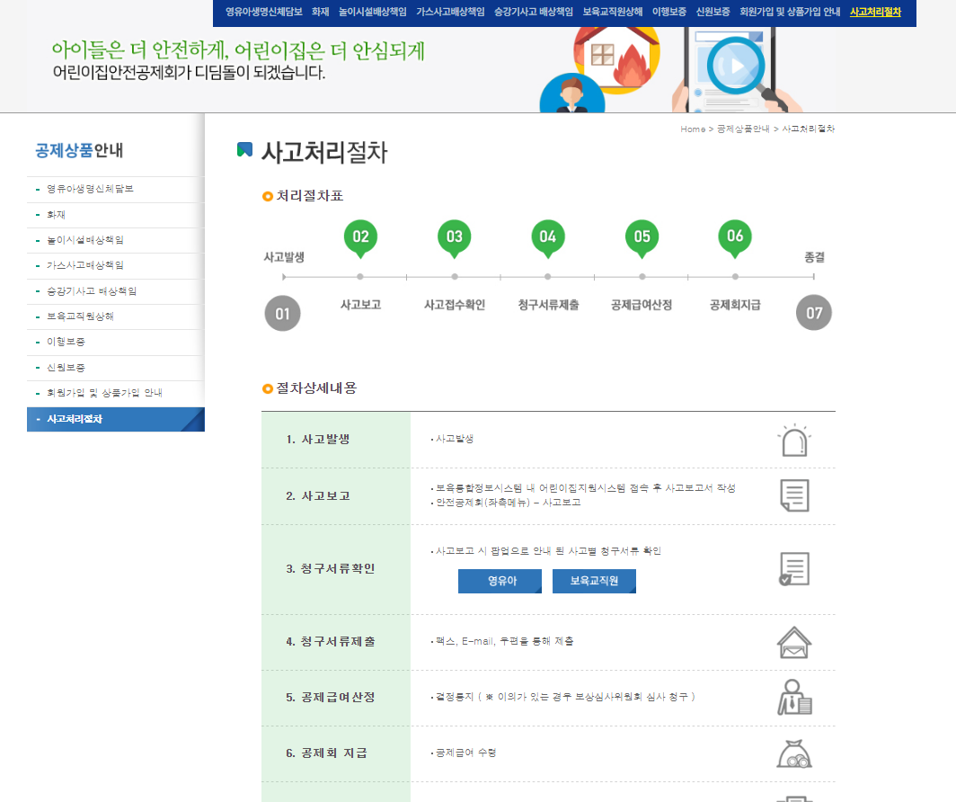 사고 처리 절차 누릅니다 . 영유아 버튼을 클릭 합니다.