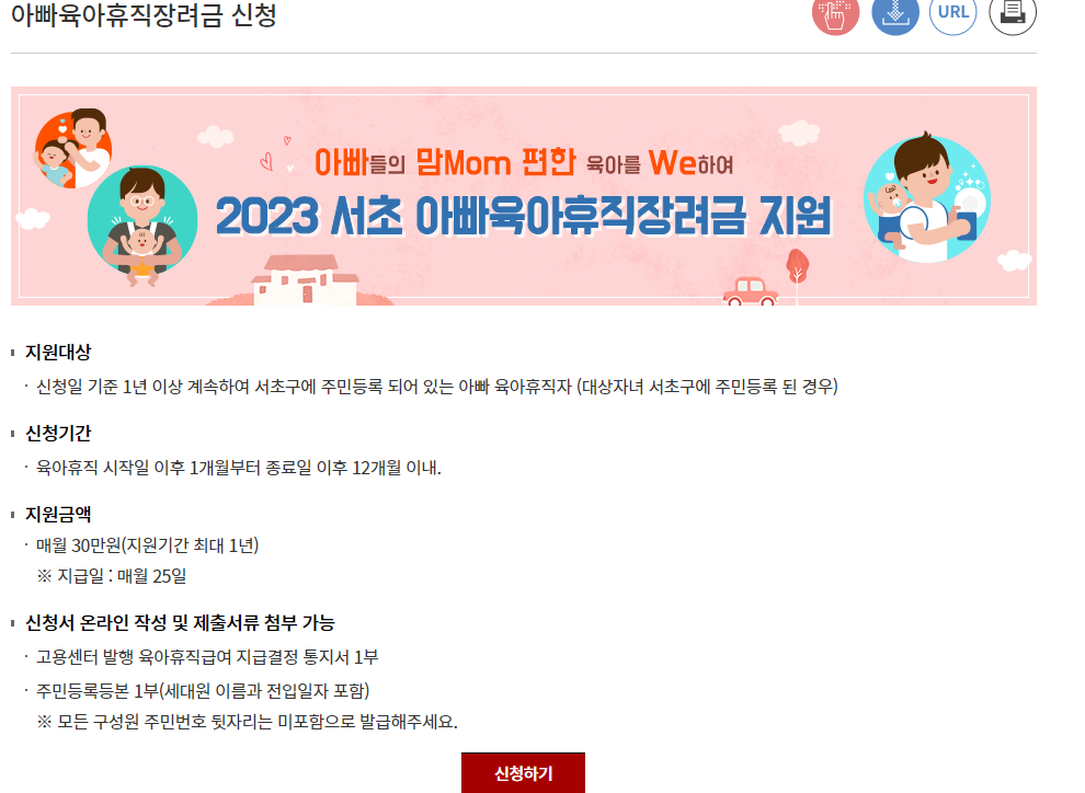 서초구 아빠육아휴직 장려금 지급