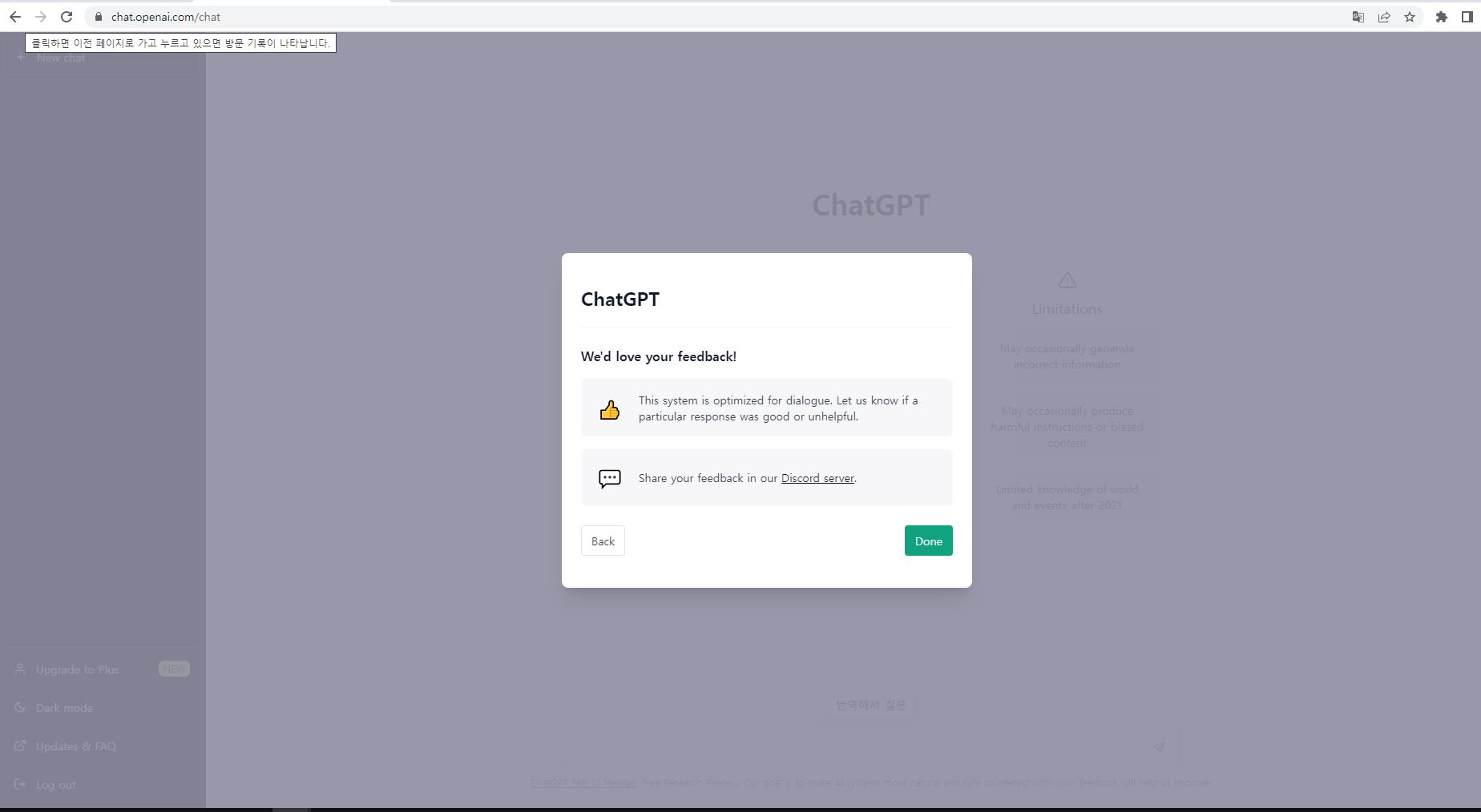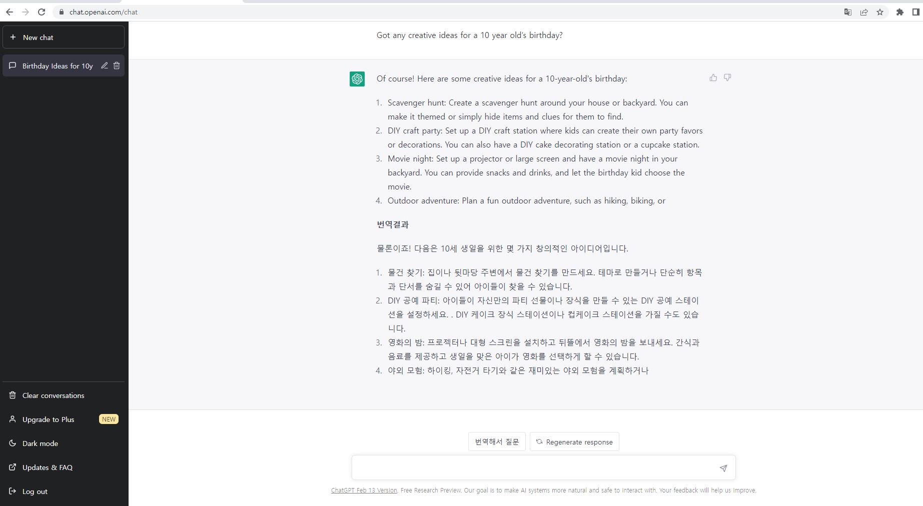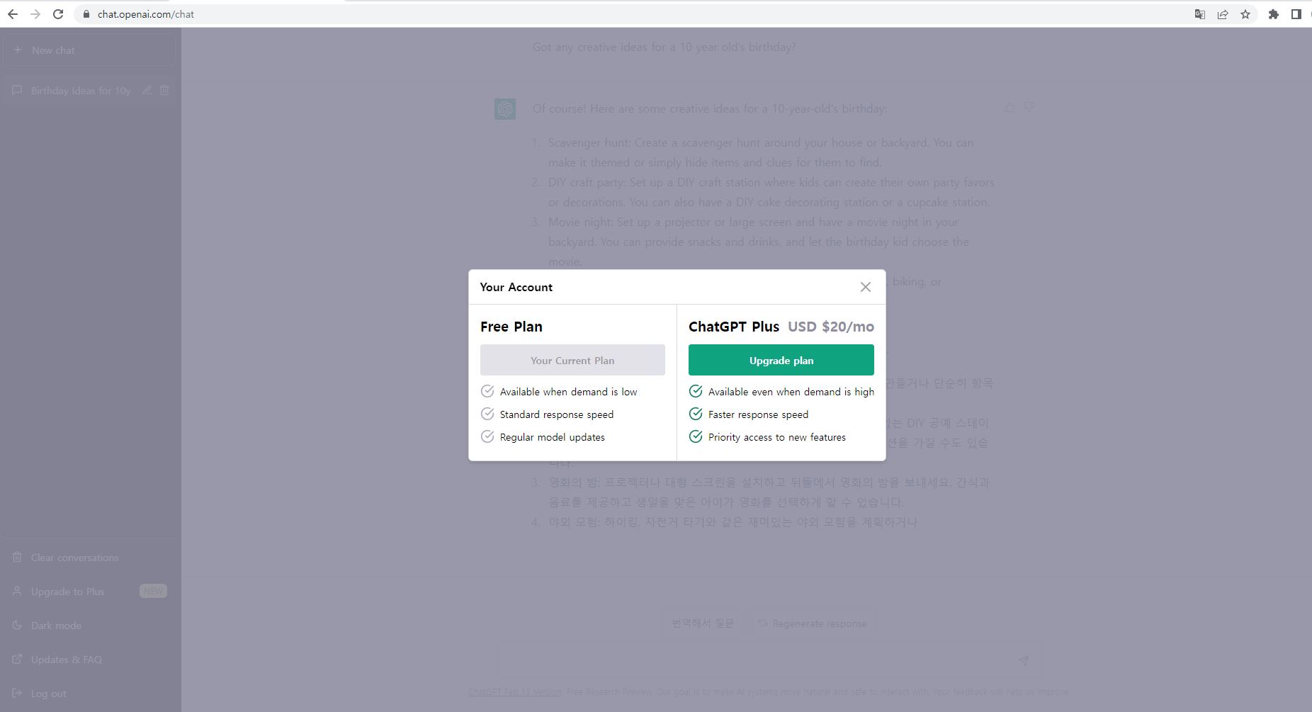 왼쪽 하단에 Upgrade to Plus 가 있어서 눌러보았는데 유료로 돈을 지불하면 더 좋은 AI를 얻을수 있나봅니다. 유료로 전환한다는 말을 들었었는데 이건가 봅니다.
