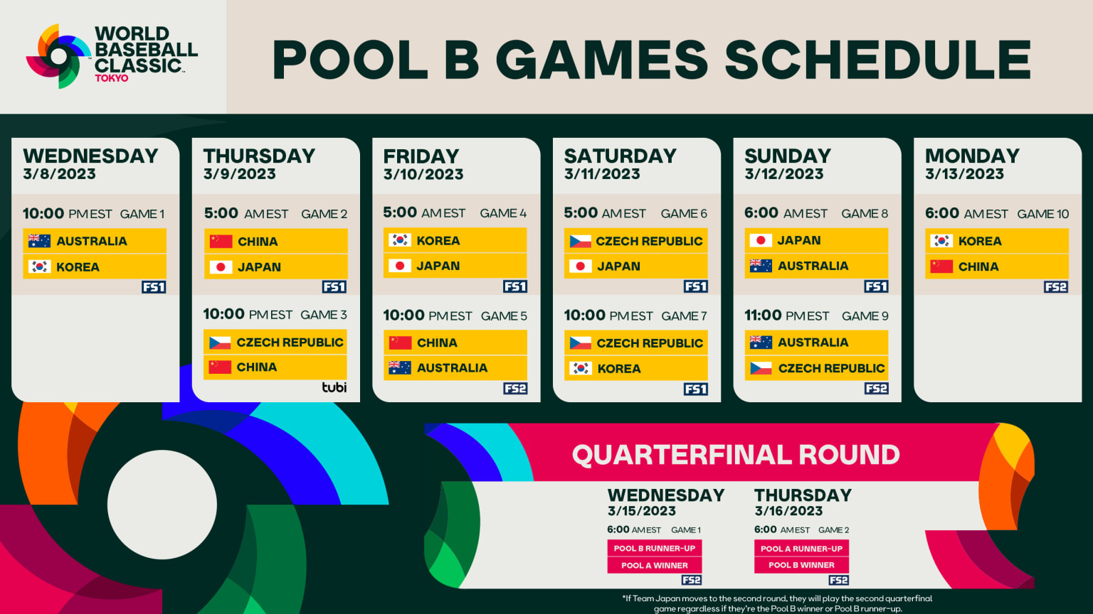 대한민국은 POOL B 에 해당되며 경기를 함께할 국가는 일본, 체코, 호주, 중국이며