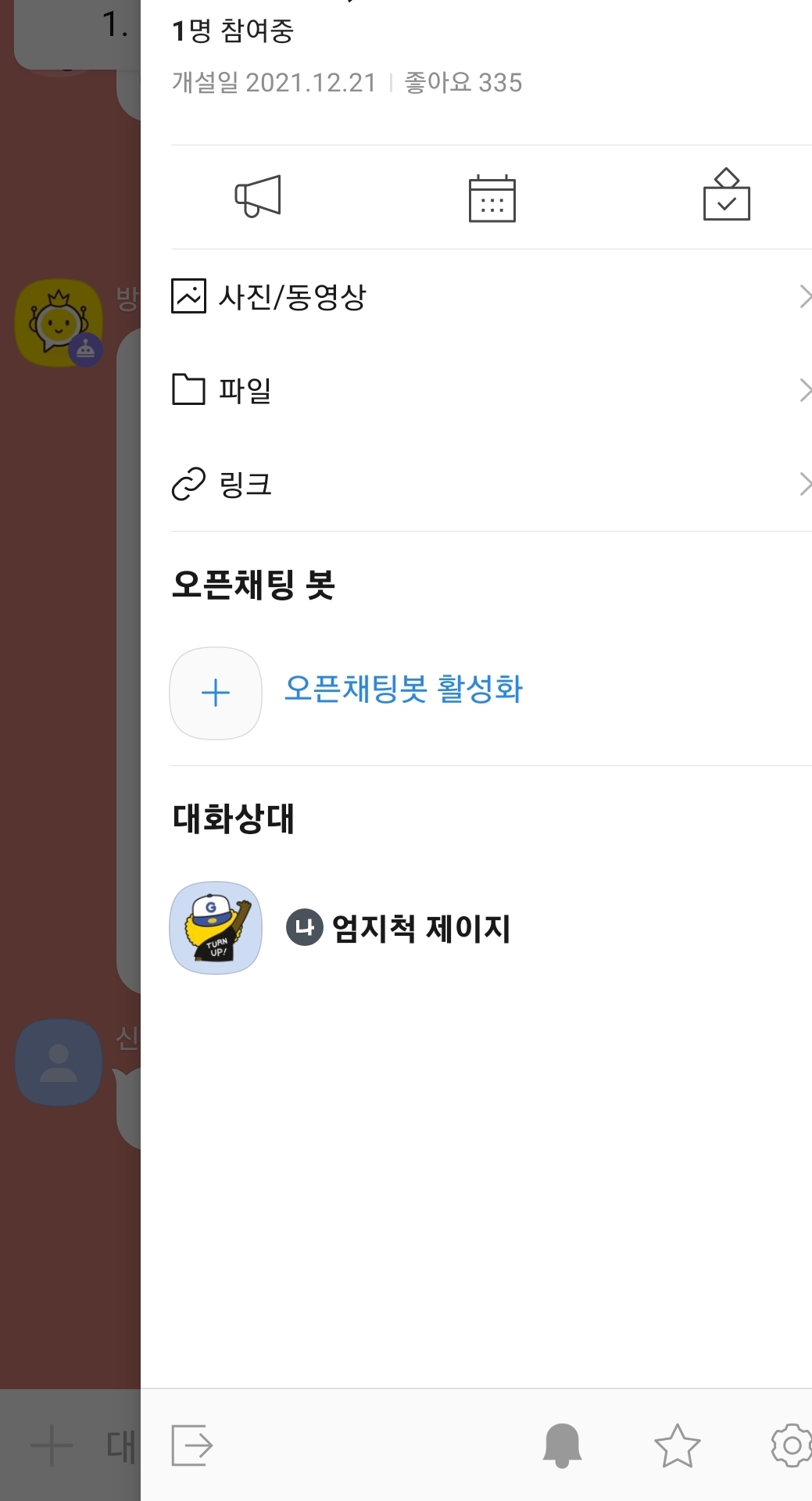 카카오톡 앱을 열고, 하단에 위치한 채팅 아이콘을 눌러 채팅 목록으로 이동하세요. 원하는 대화방을 선택한 후, 오른쪽 상단에 있는 메뉴 버튼을 클릭합니다.