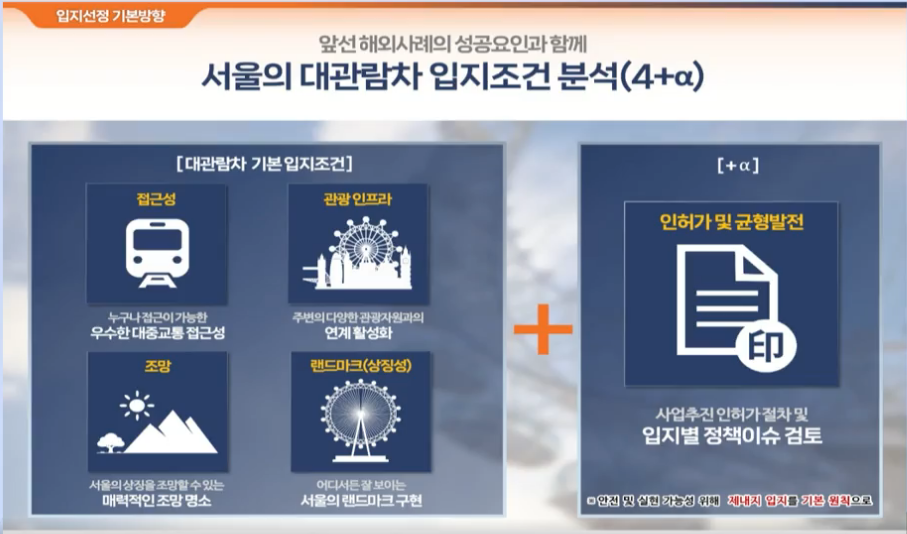서울시는 하늘공원에 대규모 관람차를 만들기로 결정했습니다. 아래 글은 서울링 추진계획에 대한 요약본입니다.